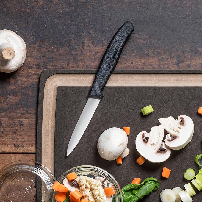 - Multipurpose straight edge paring knife designed for garnishing, mincing, peeling, slicing and dicing with razor sharp, laser-tested, tapered knife edge, which is ground to form an exacting angle to hold a sharp edge longer and ensure maximum cutting performance and durability